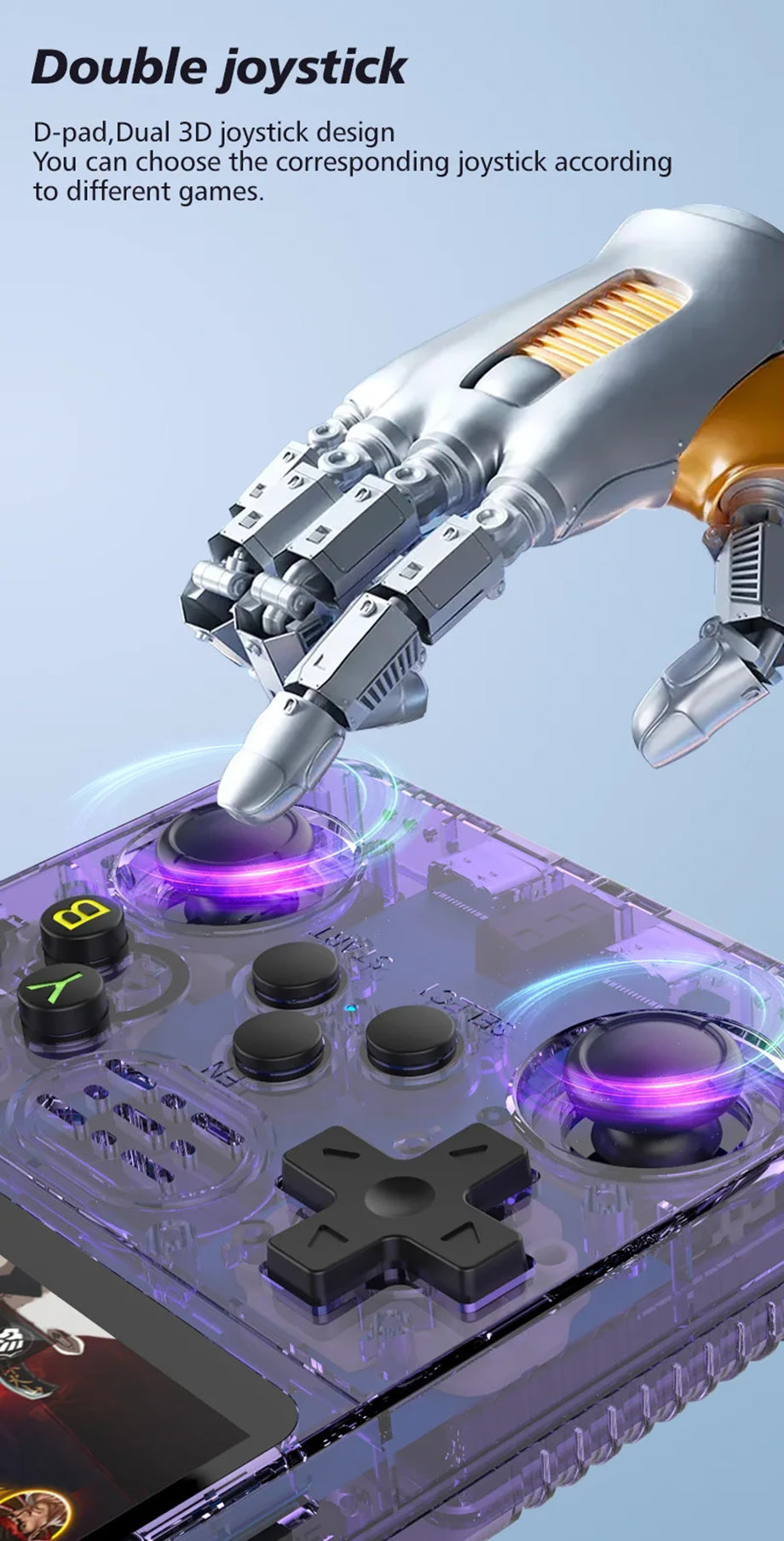 Screen:3.5 Inch System:Open Source Linux System Battery:3200mAh CPU:RK3326 ARM quad-core 1.5GHz RAM:DDR3L 1GB Resolution:640 x 480 Supports :MAME/N64/PS1/NEOGEO/GBA/FC/SFC/MD/CPS1/ CPS2/CPS3/PSP etc. Memory: 64G with 15000+ games .